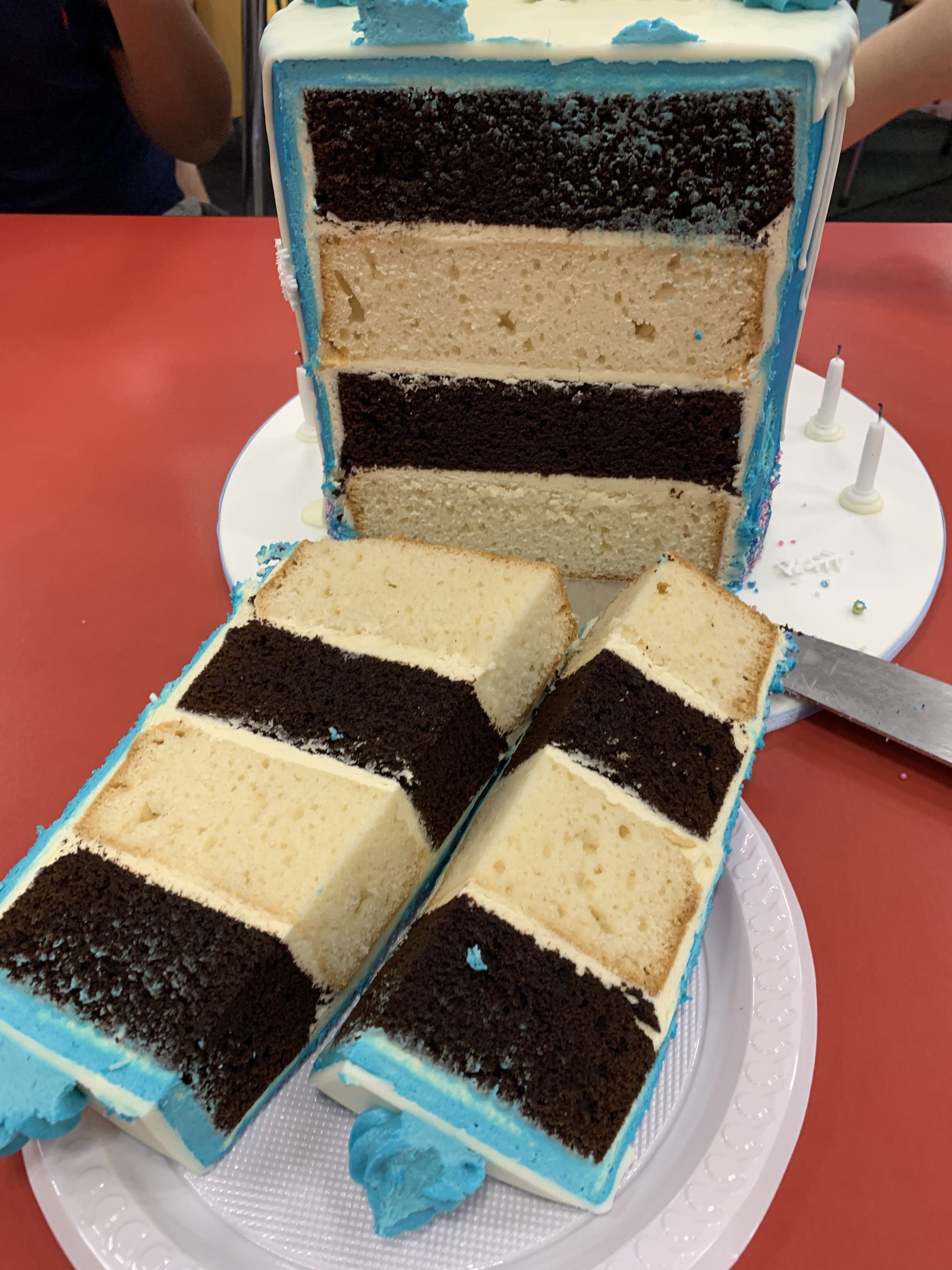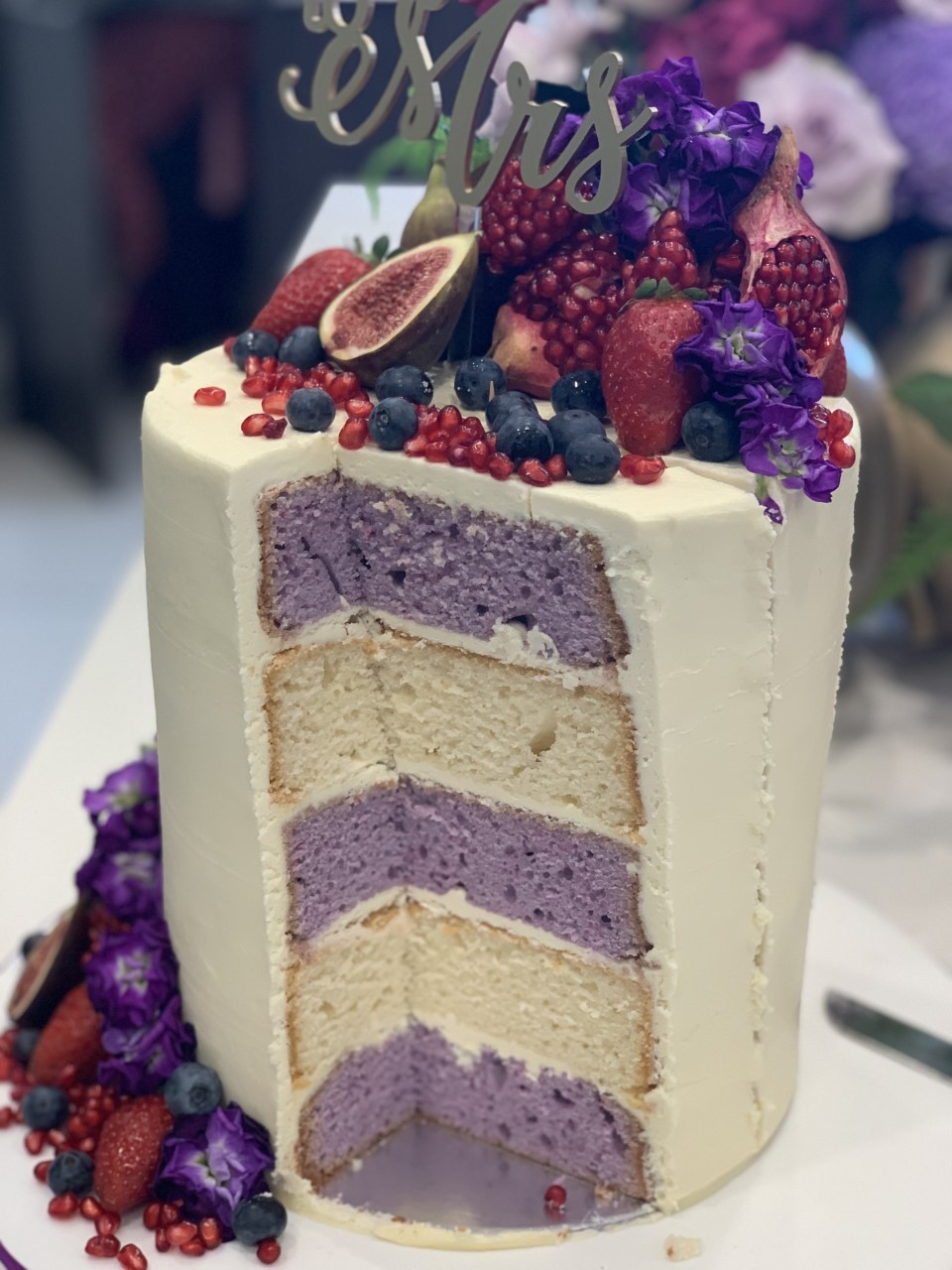 It’s a layer of Chocolate Mud Cake and White Chocolate Mud Cake. When it is cut, it gives off a 2 tone effect, and also gives your guests 2 flavours in the one slice.